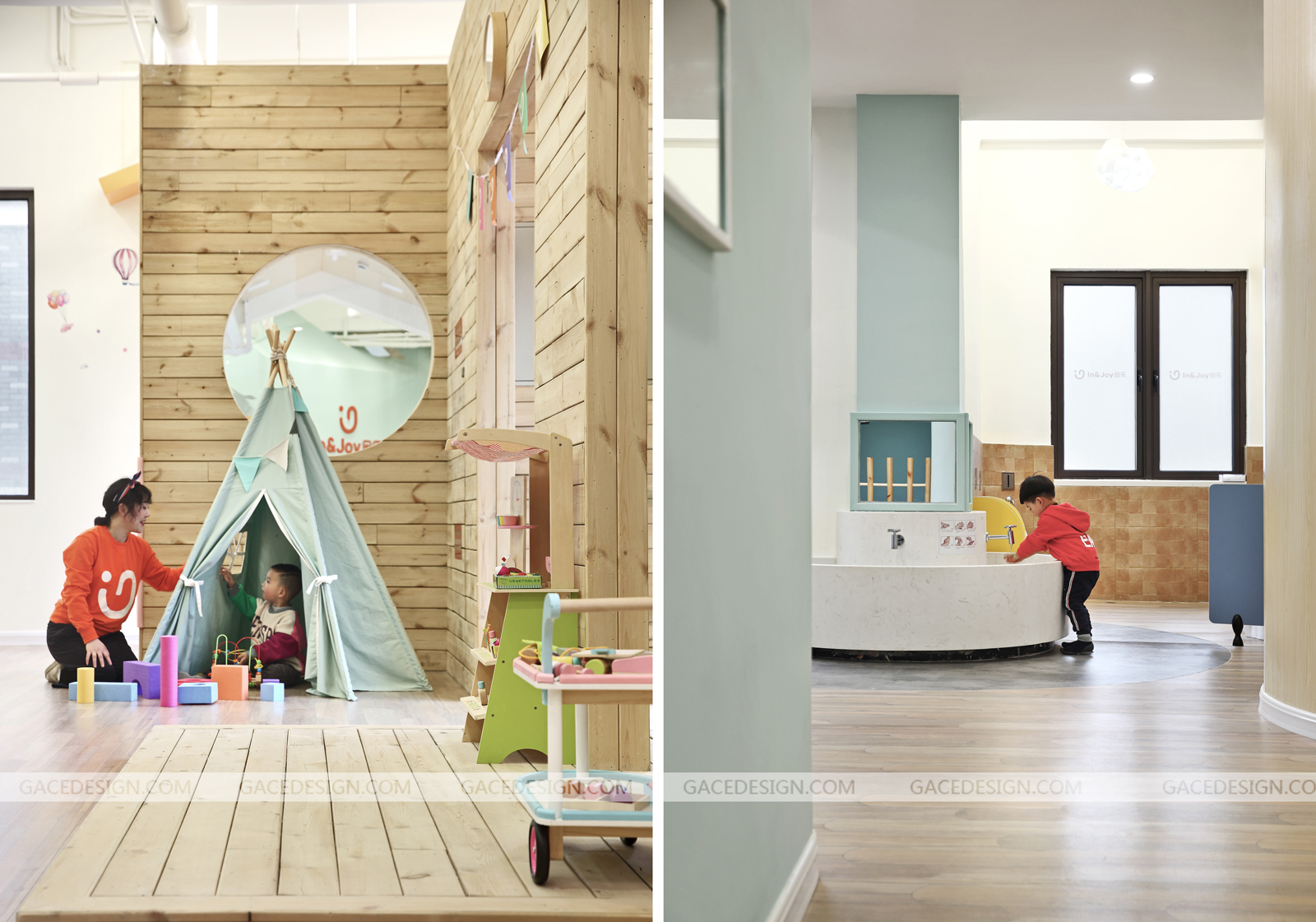 因樂國際兒童成長中心(In&Joy International Children Center)隸屬于因樂教育咨詢有限公司,是一家國際早托教育品牌。因樂的教育理念源自于瑞吉歐教育法和歐美先進(jìn)的早期教育體系,為1.5歲至4歲的孩子們提供安全、開放、舒適的空間和國際先進(jìn)的教育課程,幫助孩子開發(fā)最大潛能,啟發(fā)學(xué)習(xí)興趣,讓孩子智商情商雙重成長,進(jìn)而適應(yīng)這個快速變化的世界。設(shè)計將國際前沿的瑞吉歐課程及啟蒙理念引入「In&Joy因樂」早托兒童成長中心,希望孩子們在成長空間中釋放天性、對話自然。對自然的探索是生命最初的本能,因此早托中心的設(shè)計核心在「園」,設(shè)計師嘗試用新中式理念為渙散的空間重新定義主語。