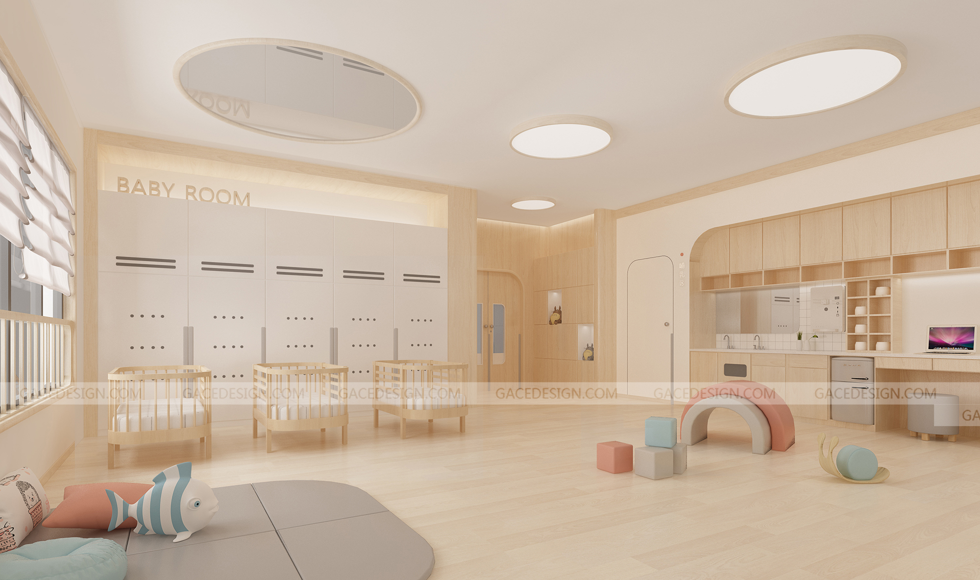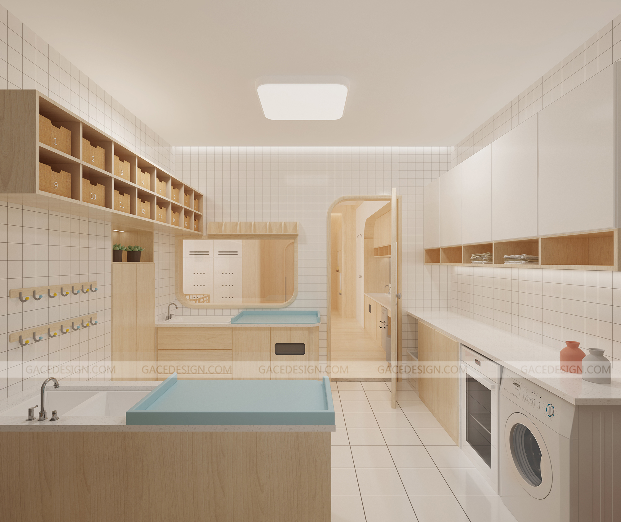 設計概括:這是我們幫啟思頓托育園設計的旗艦店,面積達到1000平以上,作為中山市高標準的示范性托育園,我們在設計之前組織設計師進行跟崗觀察,學習守護型嬰幼兒保育等系列保育書??紤]到保育員在操作層面上的便捷性,我們進行了場景模擬,把操作層面所涉及的柜體以及路徑進行了系統性整理??紤]到嬰幼兒在保育園的心理狀態以及發展心理學和空間敏感,我們定位這個項目是孩子的第二個家。是一家值得爸爸媽媽愿意托付的托育園。