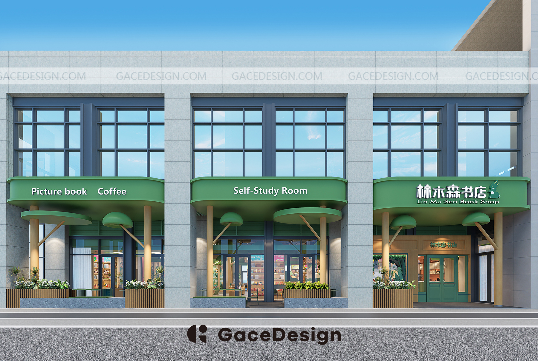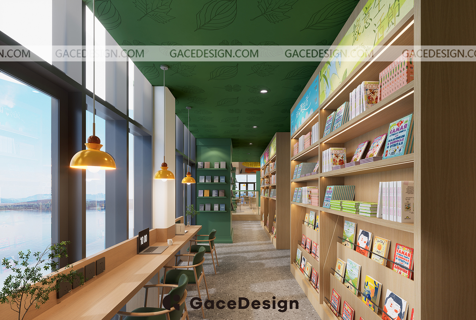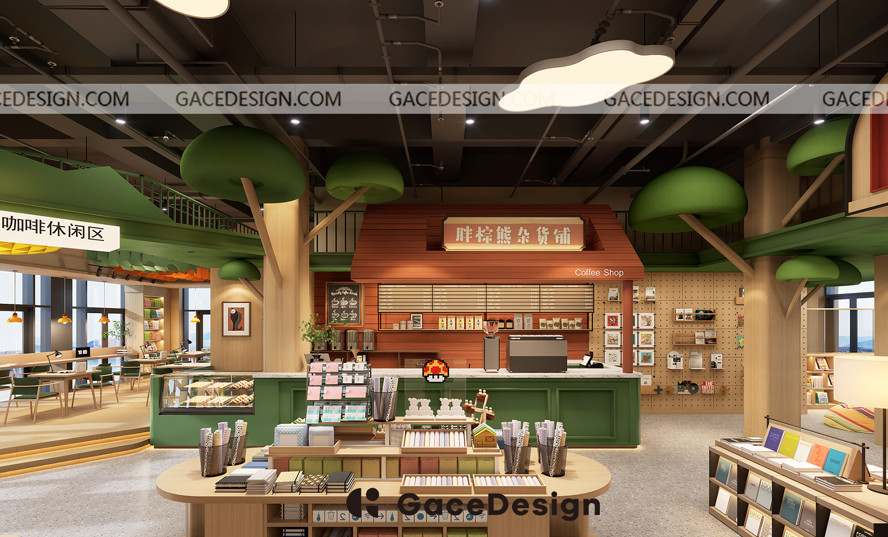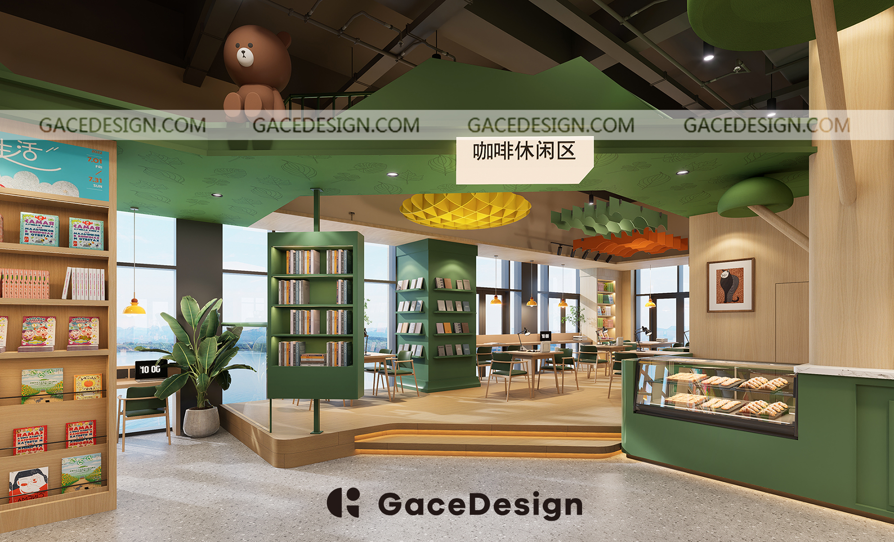 ? “笨狼家·林木森書店”坐落于湘江新區(qū)美麗的梅溪湖畔,是以笨狼媽媽湯素蘭童話作品為元素打造的兒童成長(zhǎng)、休閑閱讀空間。 旁邊還有一條清澈的梅溪湖,周邊的自然風(fēng)景很優(yōu)美。設(shè)計(jì)師在設(shè)計(jì)上運(yùn)用大面積落地玻璃,將內(nèi)外景觀融合,讓自然與室內(nèi)結(jié)合。