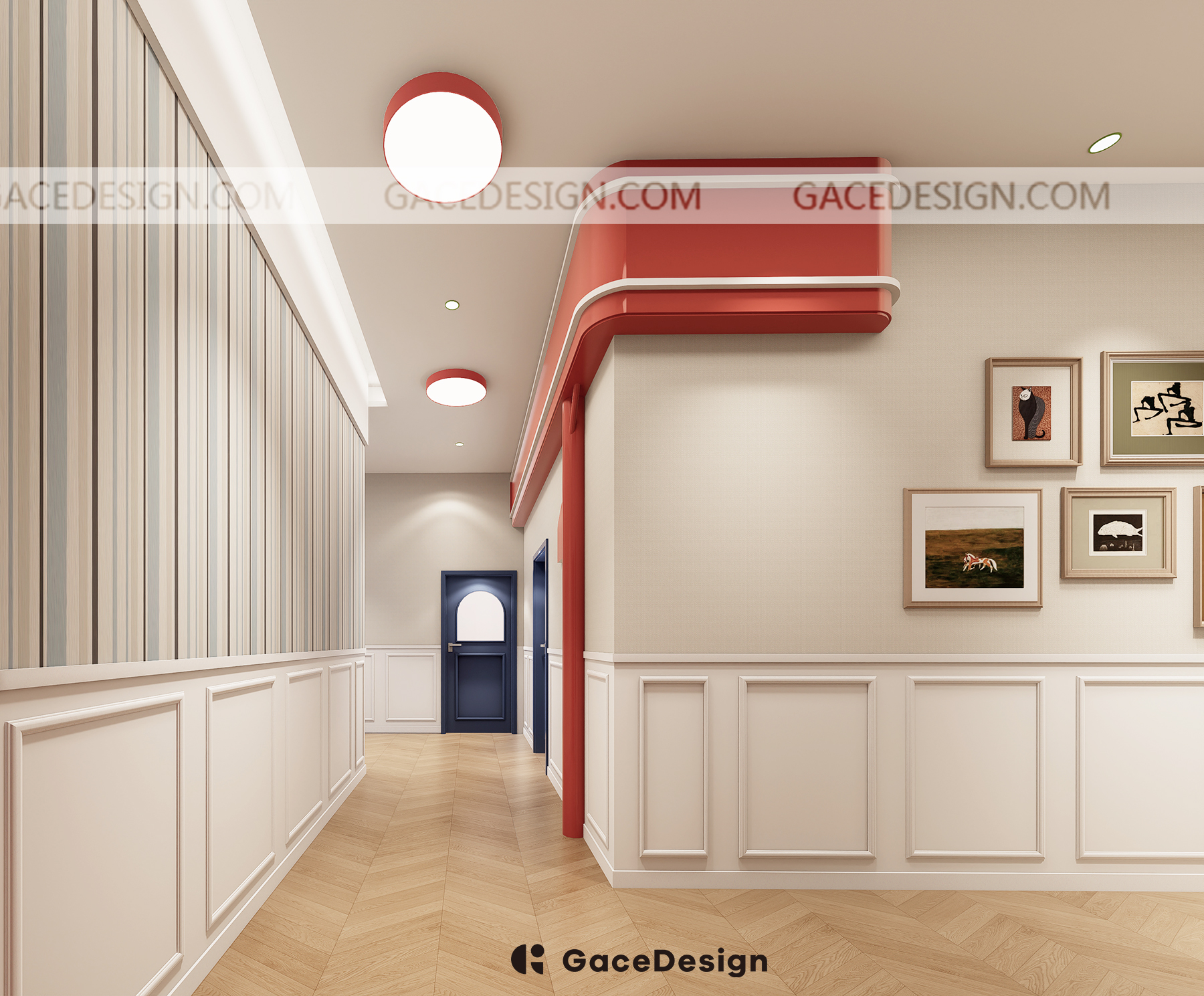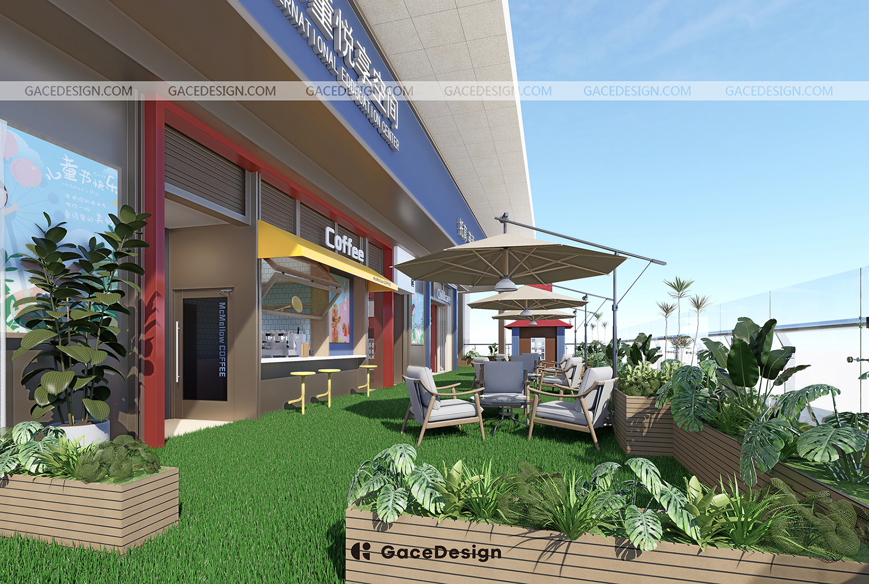 ?本次GaceDesign集合設計負責的是深圳龍華壹方天地校區(qū),室內實際面積約440㎡,室外約207㎡,包含了6個教室。新的校區(qū)延續(xù)第一家校區(qū)的主色調“紅藍白”,強調沉浸式的美式氛圍。本次校區(qū)還特意設計了多個區(qū)角,分別有咖啡吧,多個休息區(qū)角公共空間。