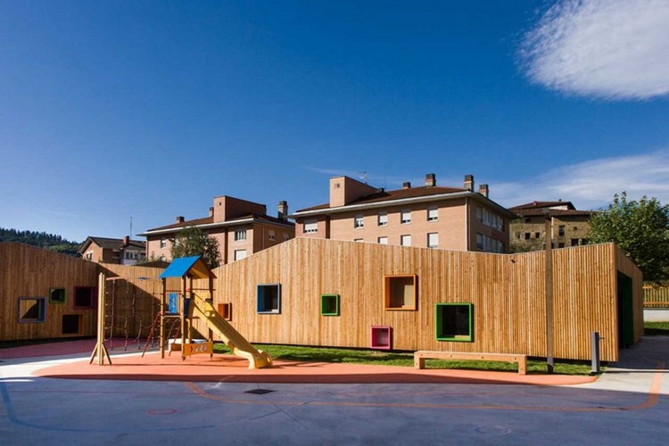 丹麥紅磚區的紅色幼兒園 這座幼兒園有突出的弧形曲線墻與蔥郁的屋頂花園。建筑外表皮特殊的材料,其形式與色......