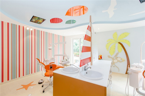 而國(guó)外的牙科設(shè)計(jì),從空間設(shè)計(jì)上來說,里面加進(jìn)了很多的兒童玩樂元素,色彩豐富活躍。孩子進(jìn)入其中的時(shí)候,仿佛置身一個(gè)樂園。從心理上,不會(huì)產(chǎn)生抵觸感。加之國(guó)外牙科醫(yī)生在給孩子拔牙前,會(huì)鼓勵(lì)孩子勇敢,把蛀牙比作惡魔,要消滅惡魔。甚至為孩子講個(gè)有趣的拔牙故事。最后孩子開開心心拔完牙,不哭不鬧。