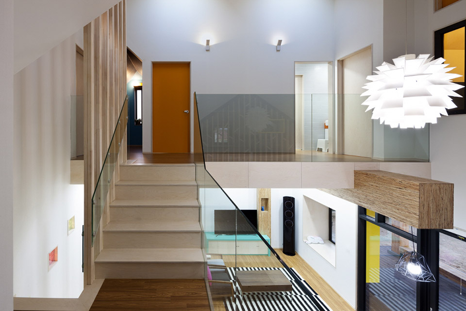 衛(wèi)生間,臥室和兒童房,還有工作室都設(shè)在了二樓。工作室面對(duì)院子,這樣可以讓家長在一邊工作室之余也能注意到在外玩耍的孩子。整個(gè)房屋以孩子為核心進(jìn)行設(shè)計(jì),創(chuàng)造出有趣關(guān)聯(lián)還有互動(dòng)的室內(nèi)外空間