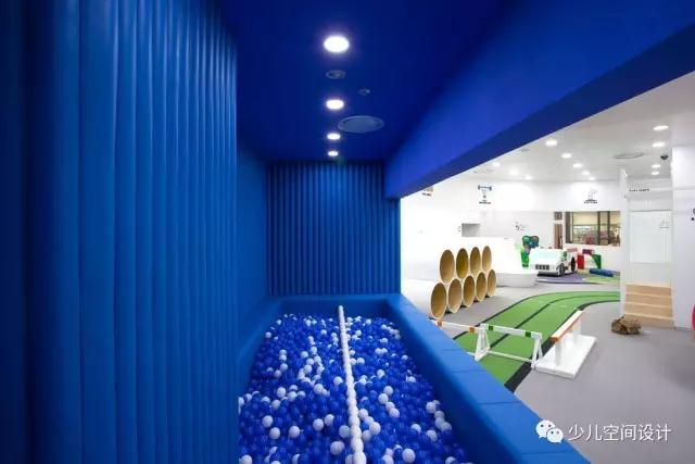 在這里設有放滿小球的游泳池,可以給孩子們在這個游戲池子中自由的玩耍,還有滑梯、積木小跑道這些有趣的游樂設置吸引著越來越多的孩子,而整個游樂設施都采用了安全、抗菌認證,所以家長可以很放心的在咖啡館里喝一杯咖啡,看著小家伙們參加有趣的運動給這個小購物廣場帶來了人氣。(幼兒園設計)