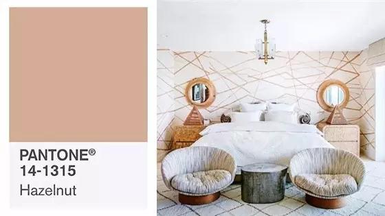 近似淺啡色的臻果褐,也是春季中常見的顏色,最適合崇尚自然和低調的女生穿搭,舉手投足也散發優雅的感覺;家居小物也處處散發森系氣息。相信這款顏色會連續流行幾季。謙遜和穩定的溫暖,榛果色將毫不費力地迎接下1個季節的過渡色。(幼兒園設計)