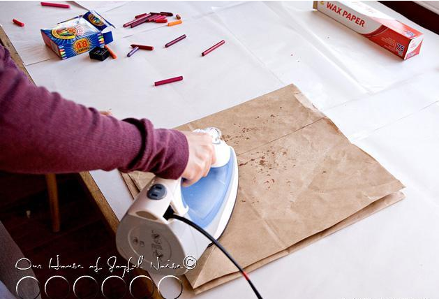 折疊蠟紙和牛皮紙,準備熨燙。