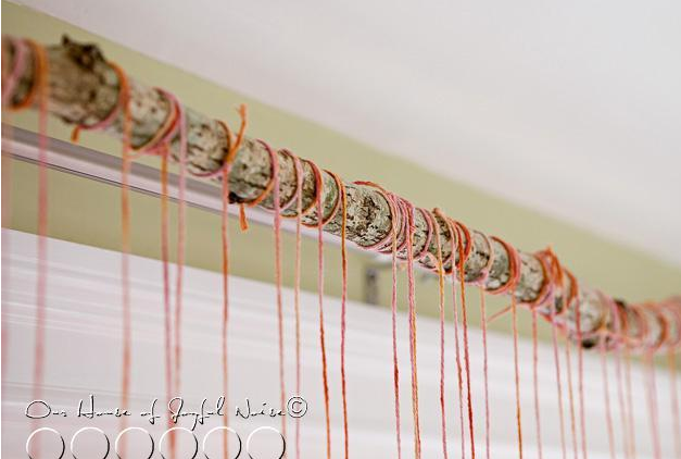 用絲帶將心形圖案串起來,調整不同的長度,裝飾教室