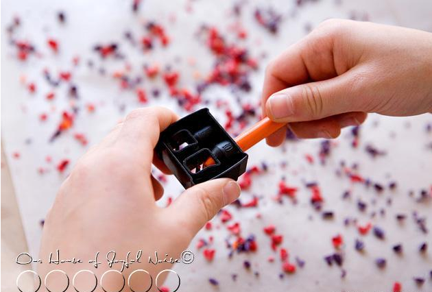 普通的卷筆刀沒有那么大的孔,所以建議老師們使用眉筆的專用卷筆刀,或者用小刀將蠟筆削細后在讓幼兒削蠟筆屑。