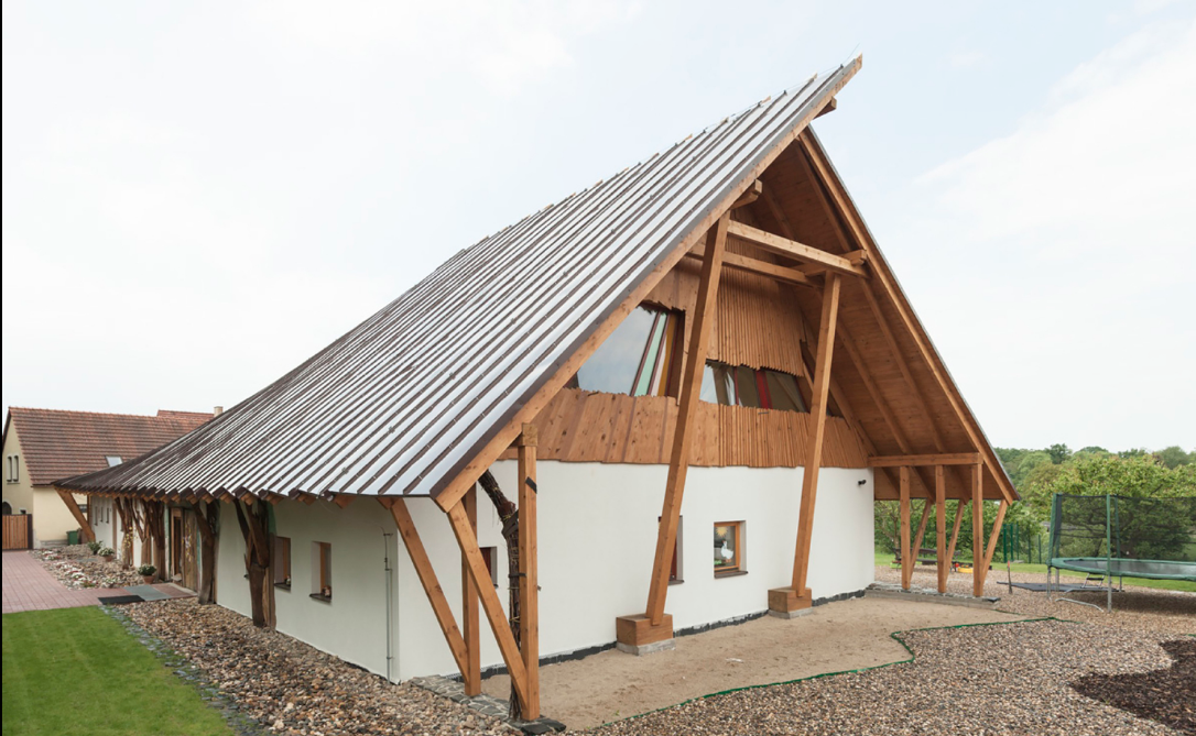 垂直墻壁上打開(kāi)的門窗被設(shè)計(jì)用作抵御洪水,或者能夠更輕松的進(jìn)行素材的更換。屋頂是銅色鋁板。