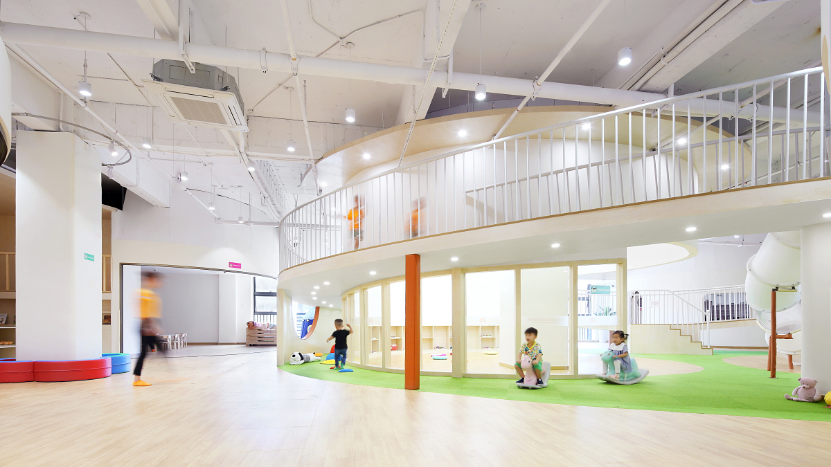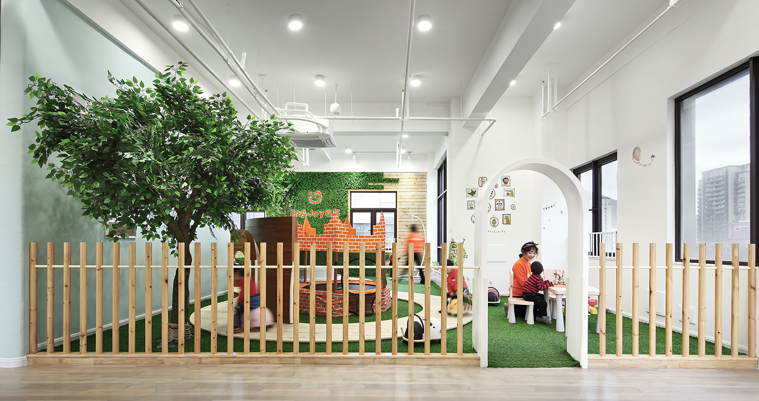 Harvey:從日本回來后,我們就開始質疑一些事情:為什么國內早教早托、培訓機構空間普遍是五顏六色的?為什么這些空間的教室都是一條過道,分成很多個班?為什么空間里的功能分區是這樣的?誰定的?我們查了政府的文件,發現并沒有太多相關的明文規定。后來我們明白了,不是因為是誰定的,而是大家都不想去創新——美術都像楊梅紅,早教都像金寶貝,因為這樣簡單、不會犯錯。既然沒有特別的規定,那我們就可以打破了。在我們后邊的項目,基本都打破了傳統的設計。我知道大家都在尋求突破,只是很少人嘗試這個事情。