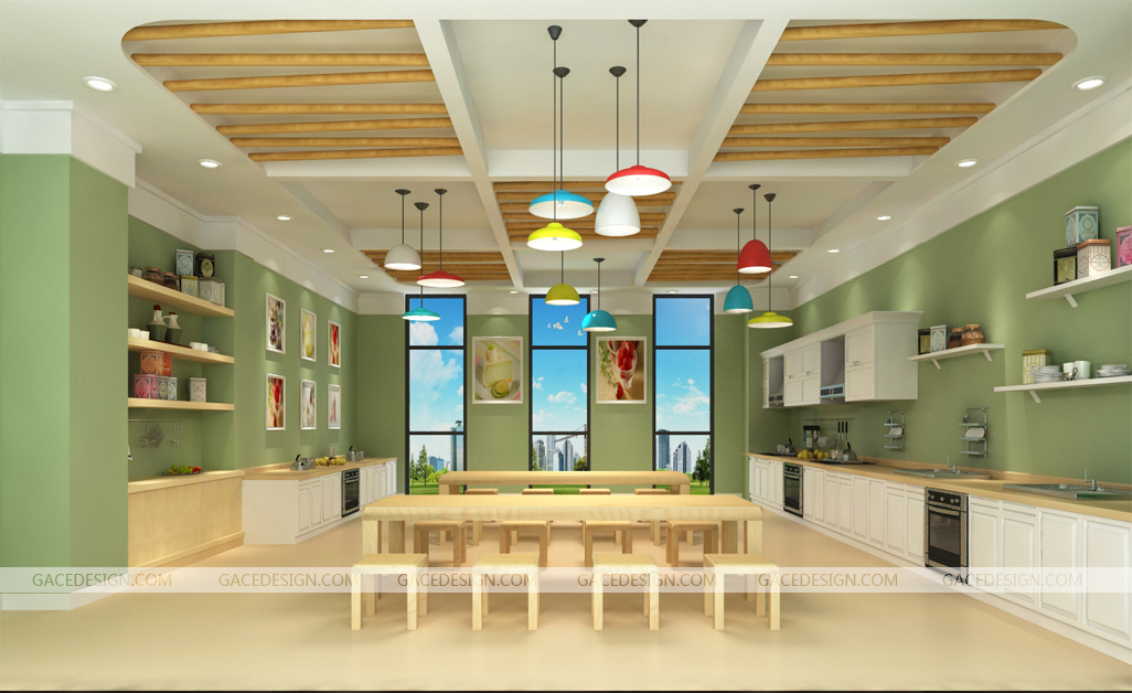安全是幼兒園創設教育環境的基本原則。因此,設置環境時,作為教師必須顧及到幼兒身心兩方面:一是心理安全,這意味著幼兒能深切地感受到教師是很關心和愛護他的,幼兒能在幼兒園得到大家的尊重,感到像在自己家里一樣的溫暖;二是身體的安全,除必須注意活動室光線、色彩、溫度、濕度、通風等條件外,特別要注意物品擺放的位置是否合適,活動中的材料對幼兒是否容易造成傷害,如易拉罐制作的炊具有沒有太尖銳的角等,安排的場地空間是否感到壓抑,它們之間是否會互相干擾。另外,還要教育幼兒不接近危險品,如電插座、電線等。藝術培訓空間設計