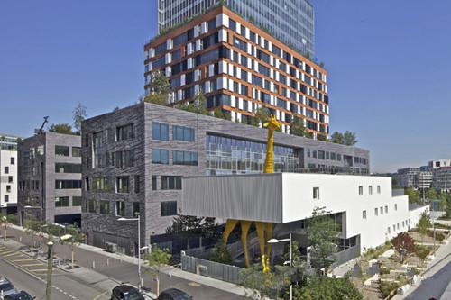 對于兒童來說,去醫(yī)院是非常恐怖的一件事,但在巴黎,新的“長頸鹿兒童看護中心”卻能讓孩子們心頭的恐懼消散。Hondelatte Laporte事務所設計的這座建筑帶有很強的趣味性,是智能建筑設計的典范。該事務所介紹說,看護中心變成了一個講故事的地方,也是城市叢林的一個隱喻。動物和樹木將建筑與自然和運動聯(lián)系起來。“長頸鹿”是一道標示,無論從哪個角度望過來都清晰可見。要進入看護中心,人們必須穿越“長頸鹿”的四條“腿”,看上去十分獨特。一只“北極熊”正攀爬在一側,一群“瓢蟲”則穿越立面,活靈活現(xiàn),非常有趣。