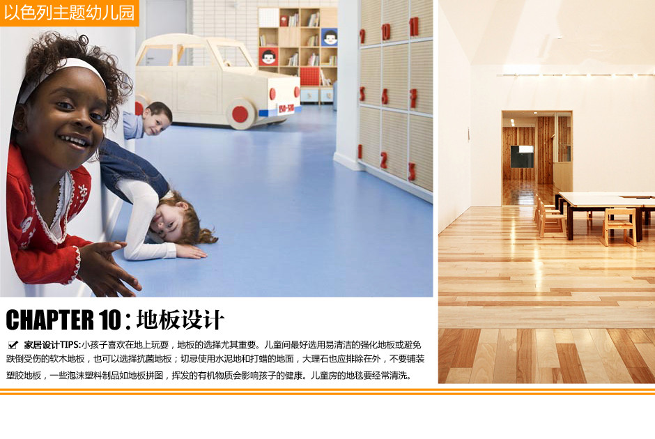 10、整所幼兒園的地面都鋪設亮藍色PVC,這種材質價位相對合適并且很實用,從觸覺到視覺都可以給孩子們舒適的享受。室內也都由膠合板、福米卡貼膜以及實木進行設計,坐墊均采用柔軟結實的彩色塑料。
